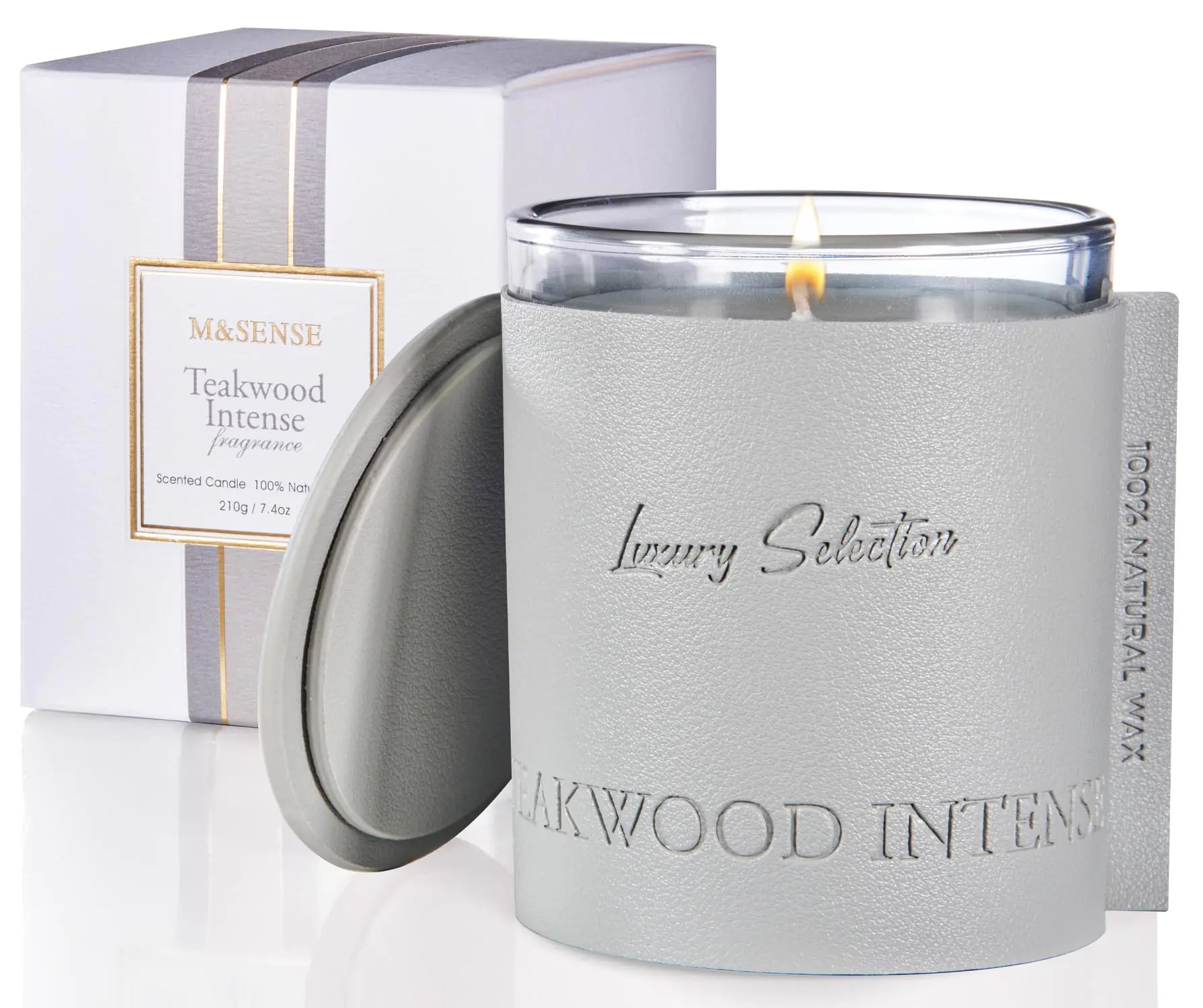 [💚 Clean Burning Soy Wax - Using a high-end blend of America grown soy and vegetable wax which is derived from a renewable source. It burns cleaner with little soot released and maintains the cleanliness of your living space "🌳 Consistent & Even Burn - Using American made lead-free cotton wicks for a even burn result. Theyre cotton flat braid wicks with paper throughout providing increased rigidity and burn more consistently than 100% cotton wicks." ⏳ Room Filling & Long Lasting - These Scented candles are designed to burn for 40-50 hours when properly cared for. The net weight of wax is 7.4oz/210g. Recommended to use in rooms smaller than 15 square meters. 🌺 Perfume Grade Fragrance Oils - Add natural essential oils. The fragrances we use are paraben-free phthalate-free and are never (ever) tested on animals. M&SENSE scents are powerful but not overwhelming and are especially ideal for people with scent sensitivities. 🎁 Luxury Leather Wrapped Candle - This scented candle is designed to be wrapped in elegant luxury leather and comes in an attractice gift-ready box. Making it the perfect candle gift for your loved ones best friends for birthday wedding house warming or any other occasions.]